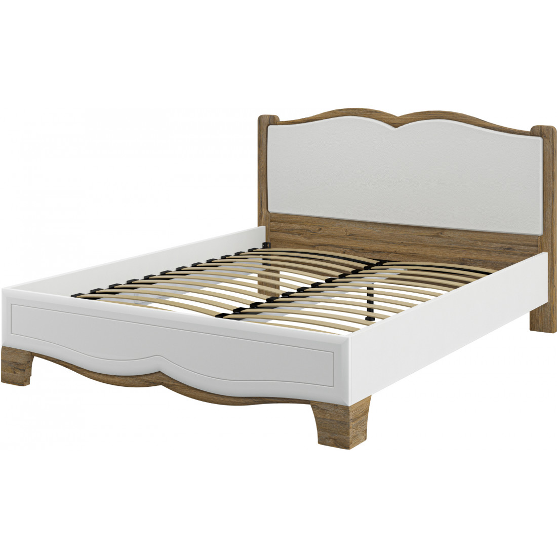 - Мягкое изголовье изготовлено из экокожи белого цвета.