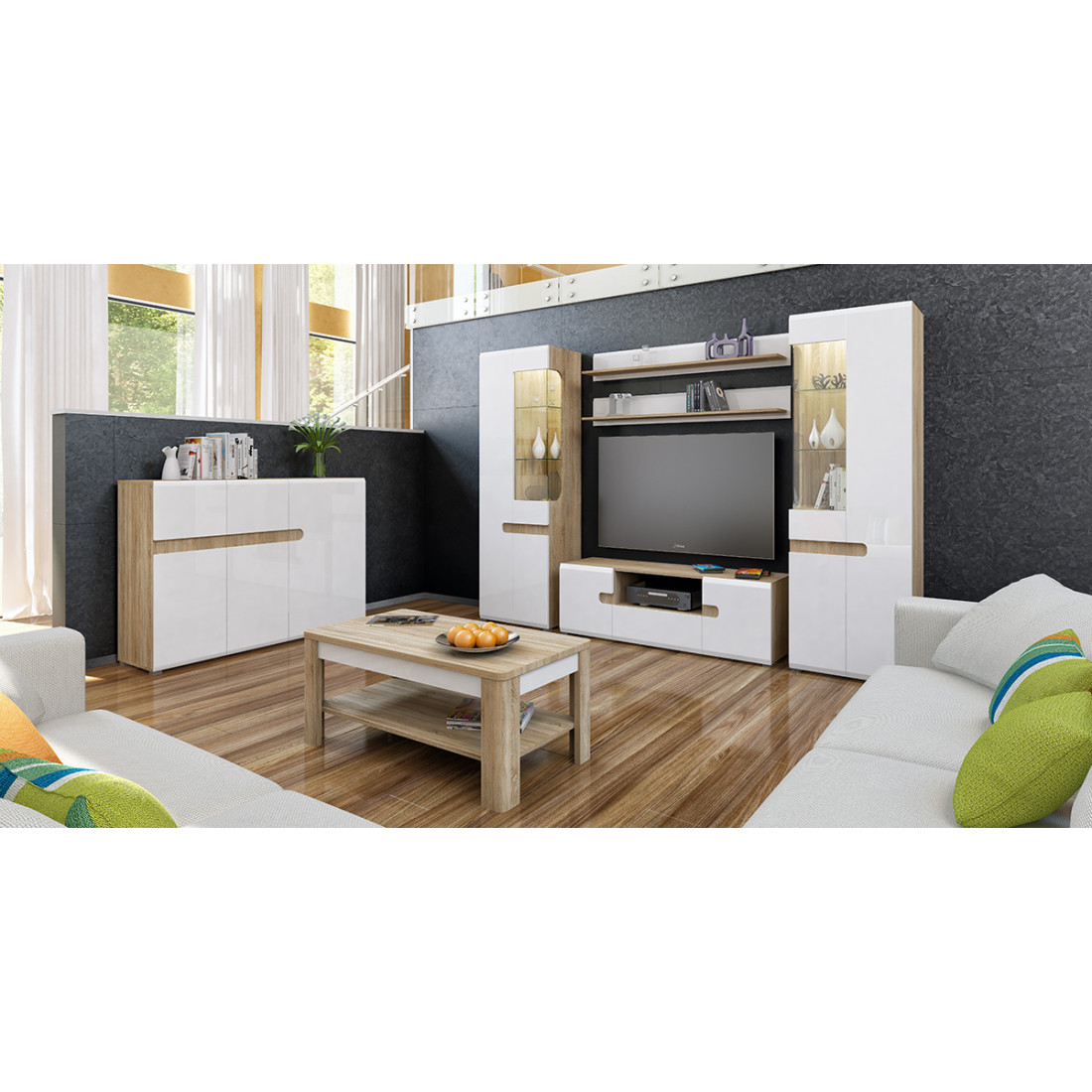 Цветовое исполнение гостиной - Дуб сонома/белый полуглянец глянец.